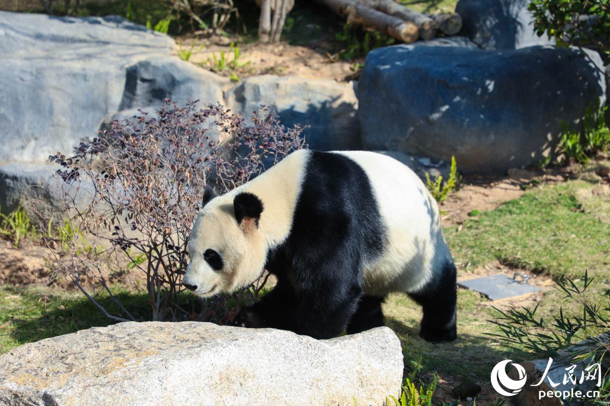 熊猫在园区内“漫步”。人民网记者 李唯一摄