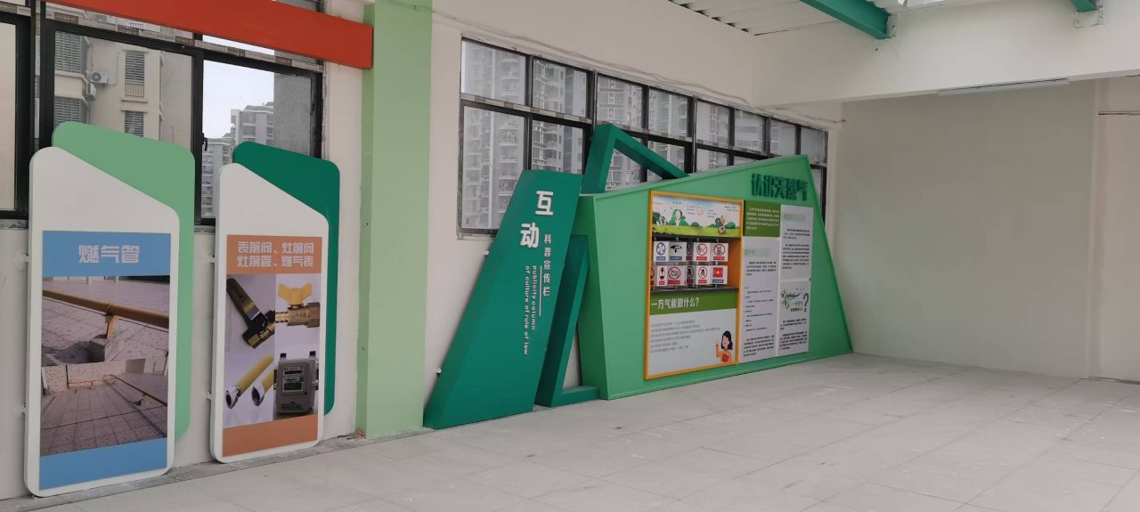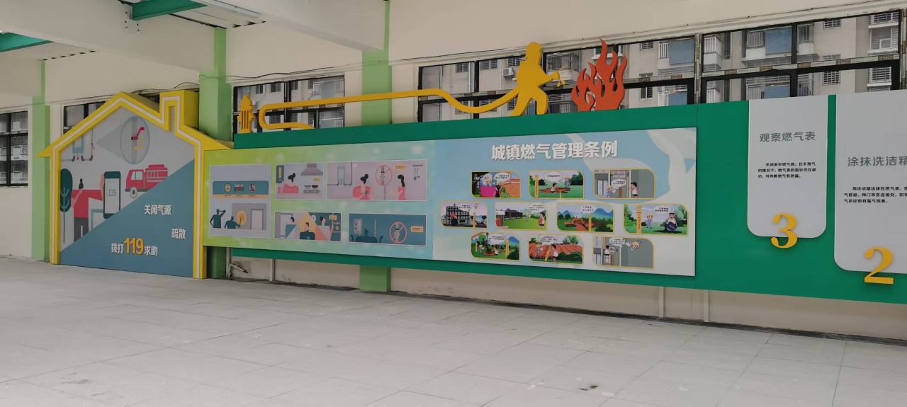 该公园秉承“寓教于景、润物无声”的设计理念,利用园林的广场铺装、小品、绿化等元素,将“万家烟火气”作为象征,通过保留长廊主题框架和粉刷立面,对长廊进行分区规划和主题展示,以一条明确的浏览动线串联内外空间布局,将“燃气安全知识讲堂”、“管道更新改造知识宣传”和“燃气发展历程”等知识结合厨房用气安全、燃气设施保护和燃气隐患案例等进行展示,确保在参观过程中能够“流畅、有序”地获取燃气安全知识,让安全用气理念更加深入人心,引导公众深刻认识燃气安全重要性;从“认知”、“警醒”,到“懂得”、“引导”的宣传和体验效果,使民众积极参与燃气安全的守护行动,共同营造安全、和谐、美好的生活环境。