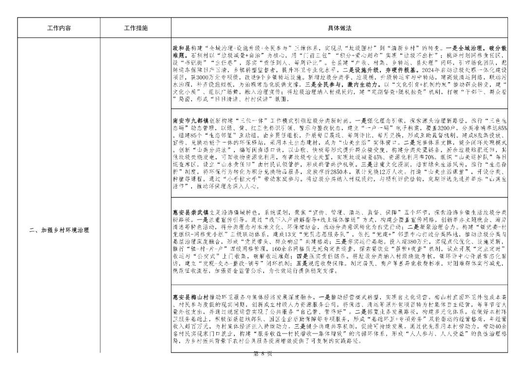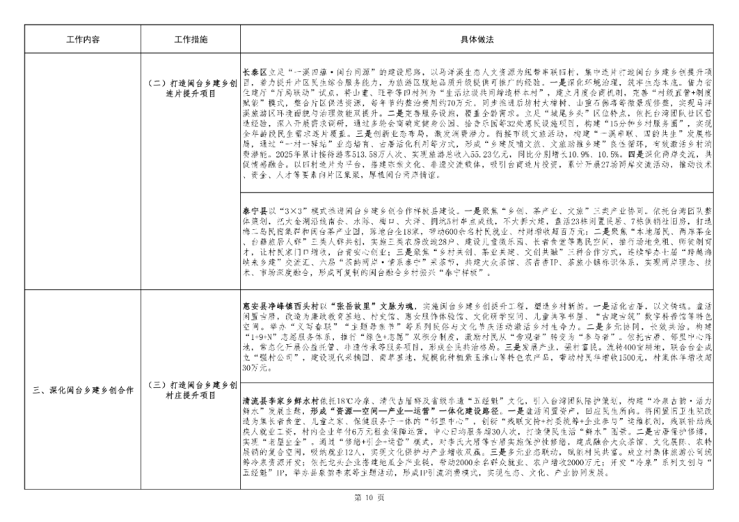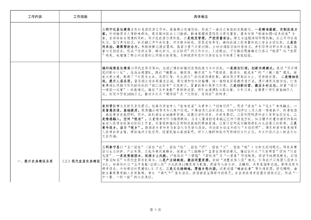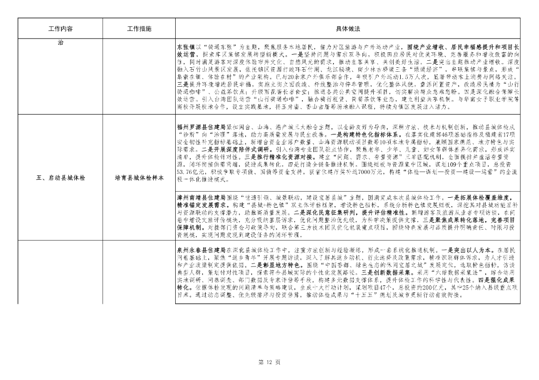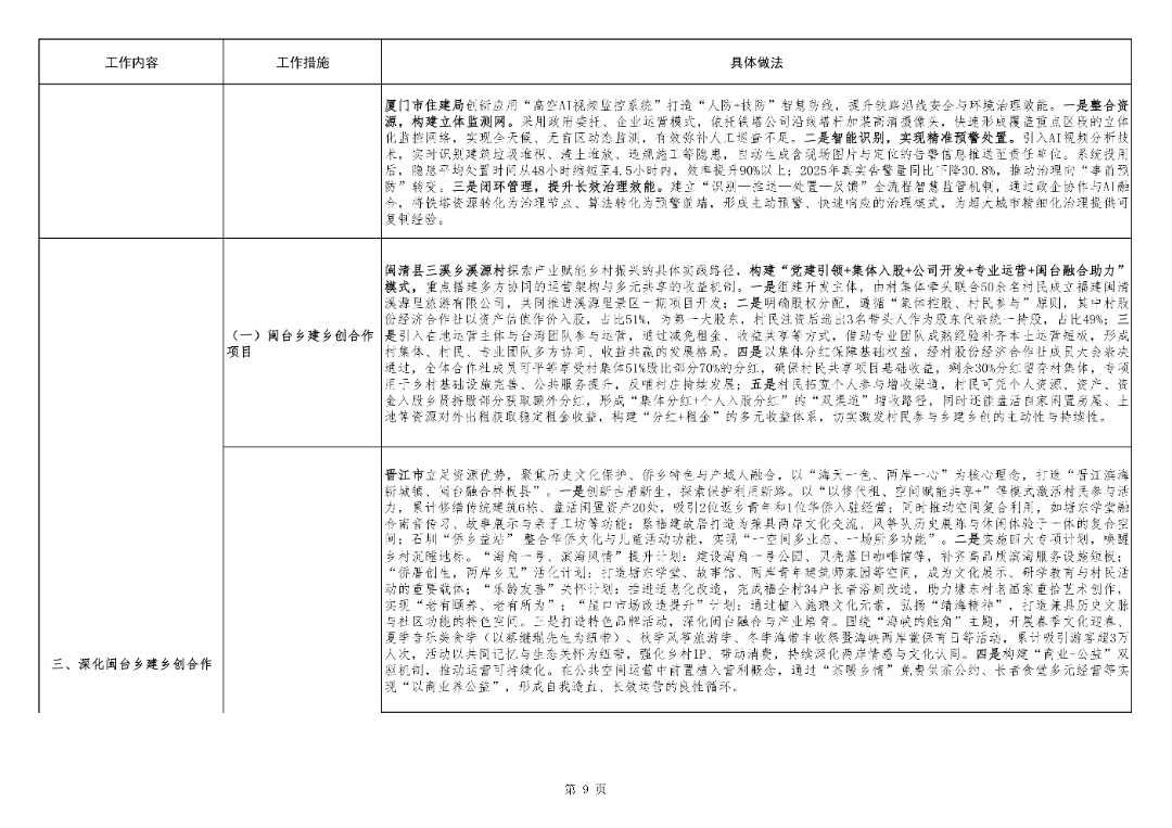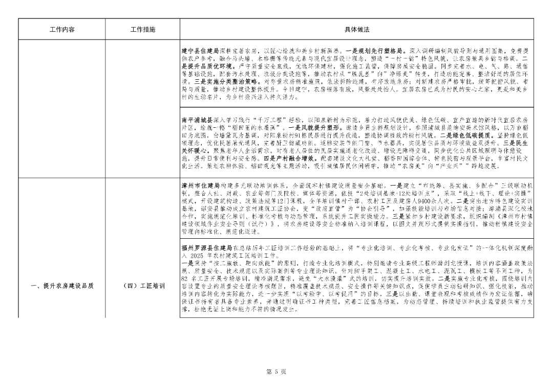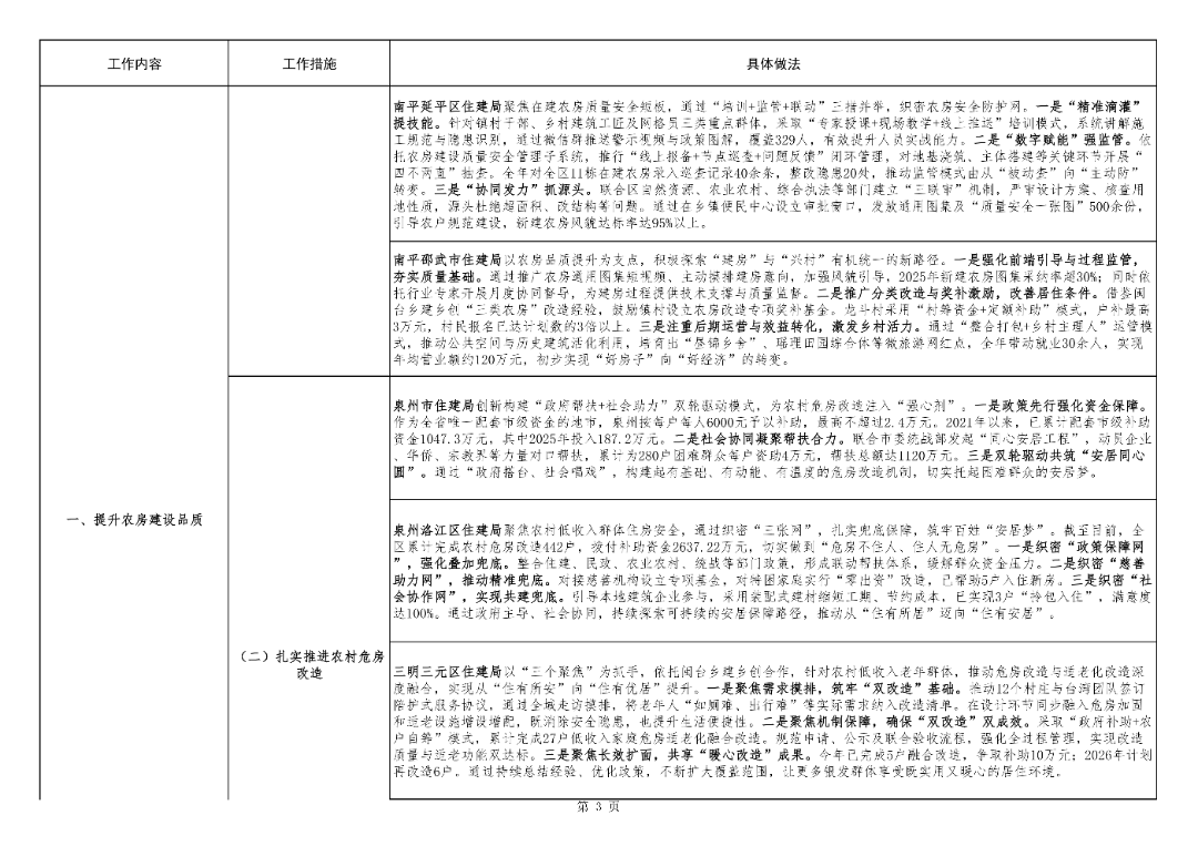 为贯彻落实习近平总书记来闽考察时的重要讲话精神,学习运用“千万工程”经验,深化拓展“深学争优、敢为争先、实干争效”行动,激励各地积极作为、守正创新,推动互学互鉴、形成氛围,提升全省村镇建设服务和管理水平,省住建厅结合各地报送材料、日常资料收集及实地调研情况,对各地在提升农房建设品质、加强乡村环境治理、深化闽台乡建乡创合作、集镇环境综合整治、县城体检等方面的经验做法进行梳理汇总,形成了《福建省2025年村镇建设可复制经验清单》。现予印发,可供大家结合实际学习借鉴。