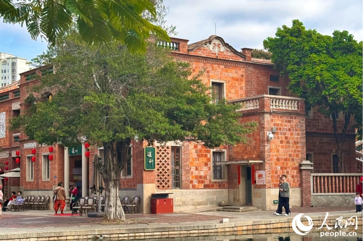 “燕尾脊”是红砖古厝的醒目标志,即屋顶正脊两端向上翘起并分叉,如燕尾分飞,造型灵动却不失庄重。人民网记者 李唯一摄