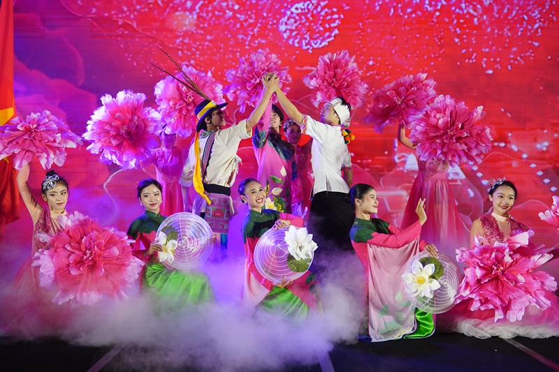 2024年9月16日,在越南胡志明市,艺术家在中越跨国中秋晚会上表演。新华社发(云南省人民政府新闻办公室供图)