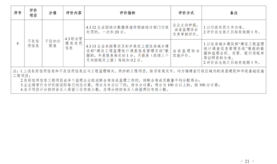 为推进我省工程监理企业诚信体系建设,省住建厅2015年印发了《福建省工程监理企业信用综合评价暂行办法》以及配套评价标准。2021年,对评价标准做了局部调整。