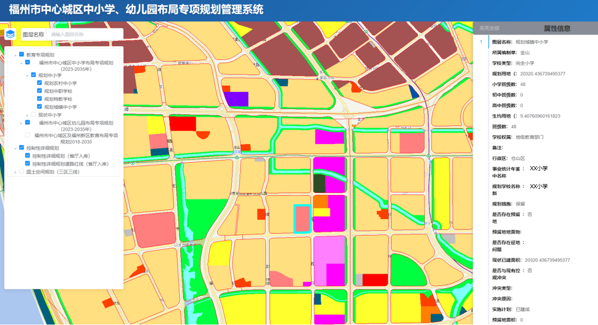 教育设施规划管理平台属性查询功能示意