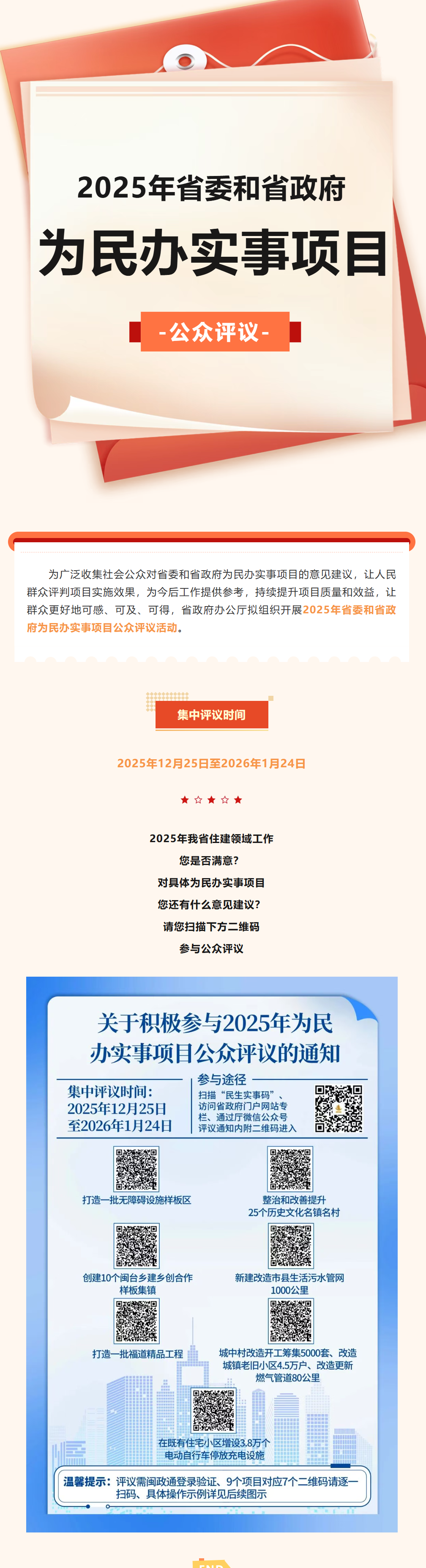 办得好不好 由您说了算丨2025年省委和省政府为民办实事项目公众评议请您来参与!