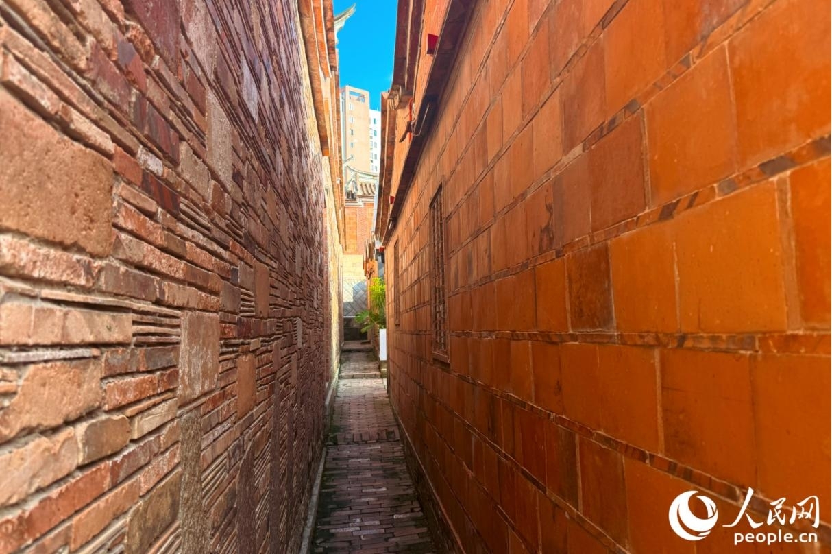 “燕尾脊”是红砖古厝的醒目标志,即屋顶正脊两端向上翘起并分叉,如燕尾分飞,造型灵动却不失庄重。人民网记者 李唯一摄