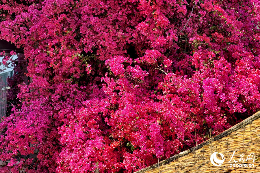 屋檐下的三角梅花枝招展,透着阳光格外娇艳。人民网记者 陈博摄