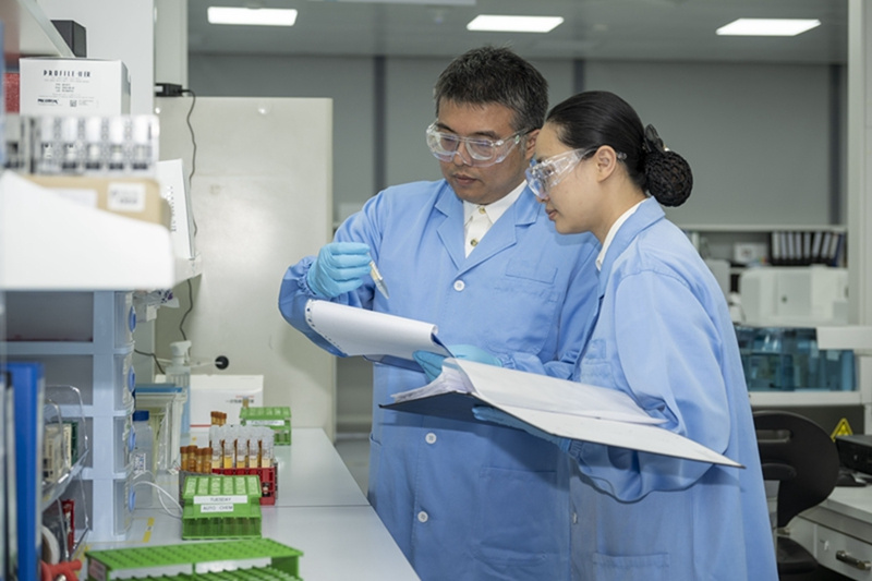 上海海关所属浦东海关关员在徕博科医药研发(上海)有限公司对研发用设备进行现场监管(2023年8月30日摄)。学习贯彻习近平新时代中国特色社会主义思想主题教育开展以来,海关总署认真学习贯彻习近平总书记重要讲话和重要指示批示精神,切实把所学所悟转化为防范化解重大风险、解决企业急难愁盼、推动外贸促稳提质等具体行动,做到守护国门安全毫不含糊、促进高质量发展毫不保留、服务大国外交毫不懈怠,以更大作为推动主题教育入心见行,以更大担当为中国式现代化贡献海关力量。新华社发(谢宗赢 摄)