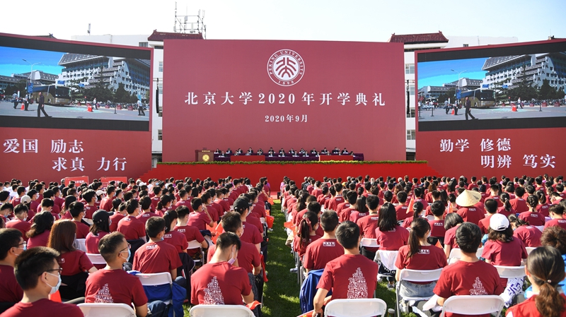 北京大学2020年开学典礼现场(2020年9月20日摄)。新华社记者 任超 摄