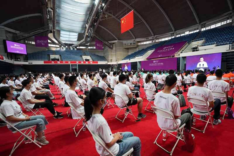 在清华大学综合体育馆,部分2020级本科生参加开学典礼(2020年9月9日摄)。新华社记者 鞠焕宗 摄