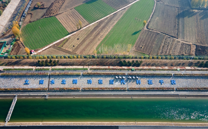 位于京冀交界处的南水北调中线工程总干渠(2024年11月14日摄,无人机照片)。新华社记者 陈钟昊 摄