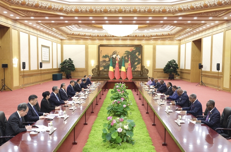 新华社北京9月4日电(记者 曹嘉玥、黄扬)9月4日中午,国家主席习近平在北京人民大会堂会见来华出席纪念中国人民抗日战争暨世界反法西斯战争胜利80周年活动的刚果(布)总统萨苏。两国元首宣布将双边关系定位提升为中刚高水平命运共同体。