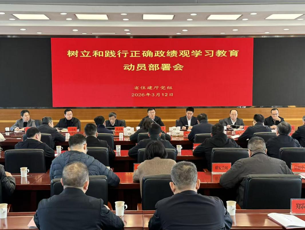3月12日,省住建厅召开树立和践行正确政绩观学习教育动员部署会,会议深入学习习近平总书记关于树立和践行正确政绩观的重要论述,贯彻落实中央和省委相关会议精神和工作要求,并对全厅学习教育工作进行部署。厅党组书记、厅长朱子君主持会议并讲话,厅领导班子成员及二级巡视员,厅各基层党组织书记,厅机关四级调研员以上党员干部参加会议。