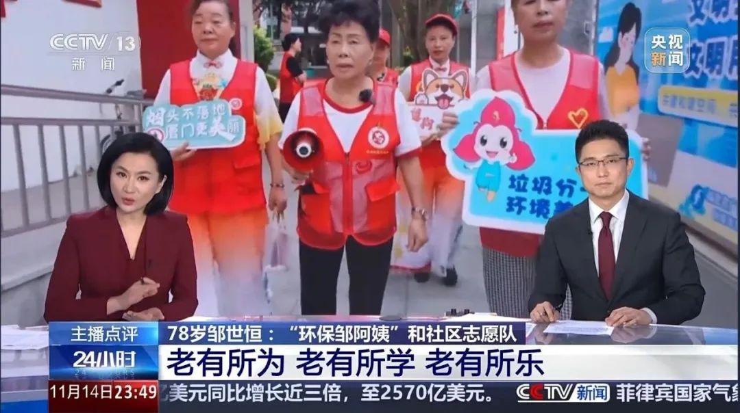 2024年11月,央视新闻频道报道了湖里金安社区“环保邹阿姨”和社区志愿队的事迹。78岁的邹世恒带领一群60岁以上的退休老人开展垃圾分类志愿服务,用“小喇叭”宣传,发起“红桶行动”,回收有害垃圾。厦门积极发挥志愿者在基层治理中的独特作用,用心用情做好宣传引导工作,带动更多居民养成分类投放的好习惯。