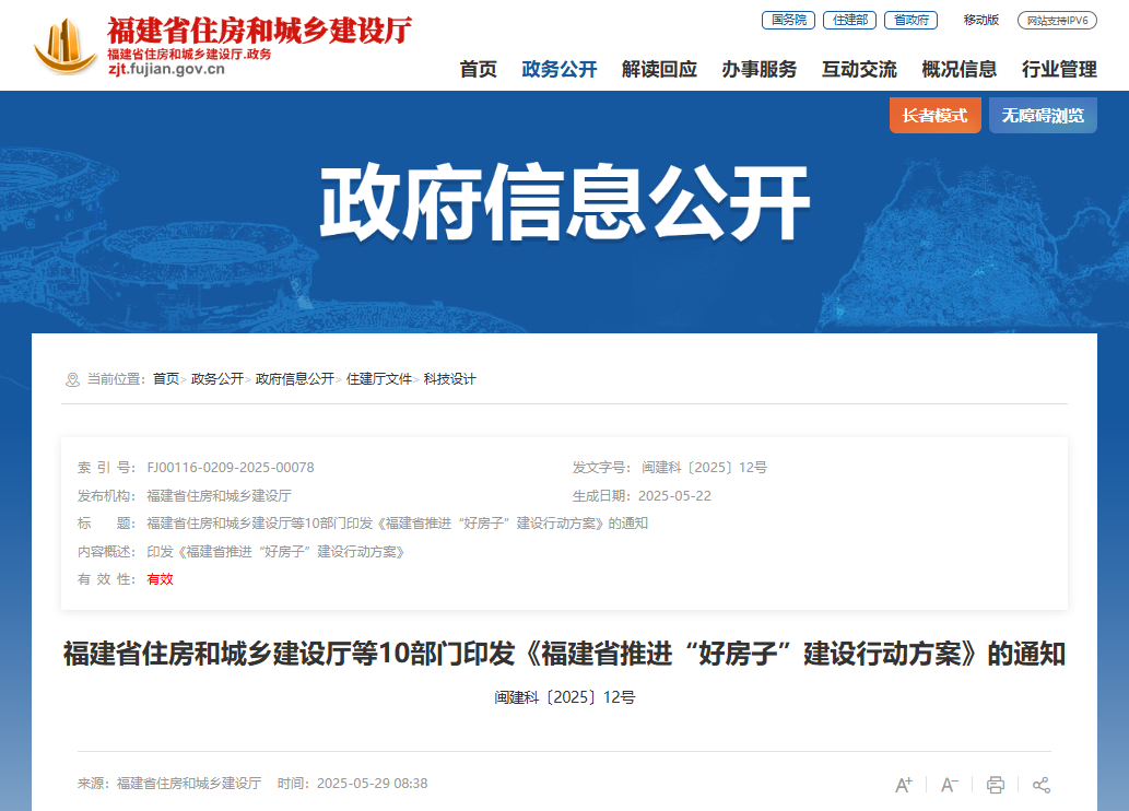 印发了《福建省推进“好房子”建设行动方案》的通知