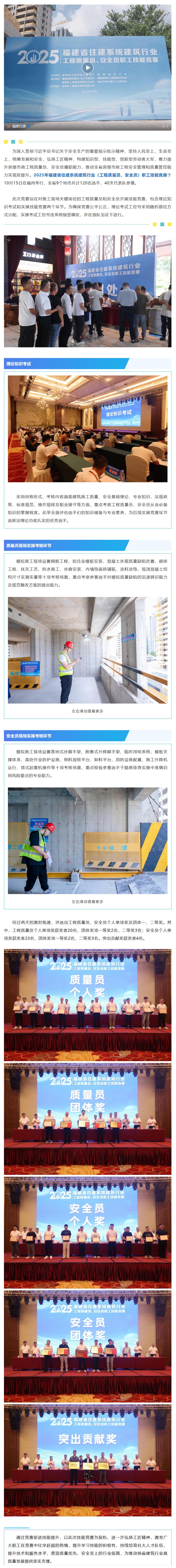 2025年福建省住建系统建筑行业——(工程质量员、安全员)职工技能竞赛在福州举办