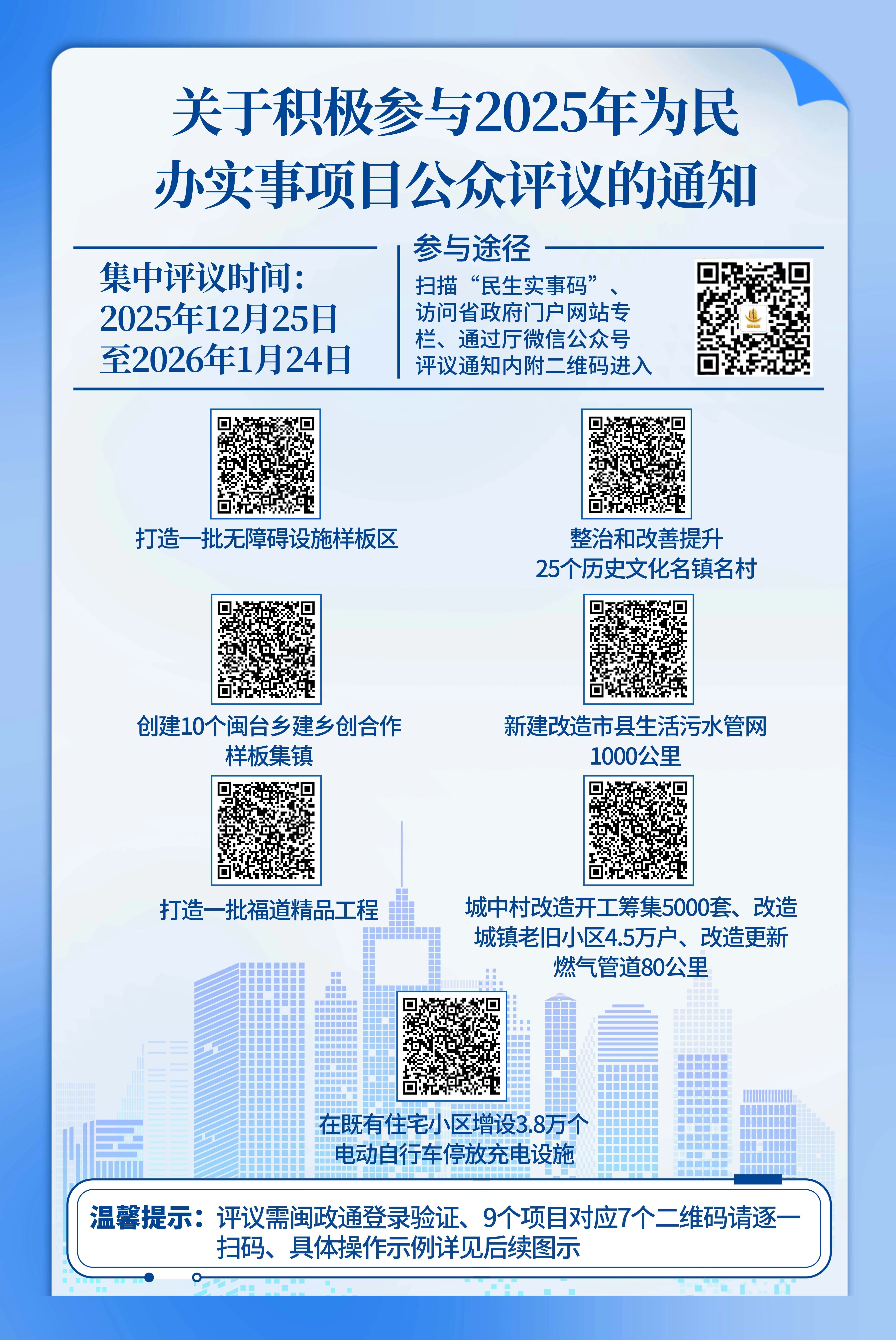 为广泛收集社会公众对省委和省政府为民办实事项目的意见建议,让人民群众评判项目实施效果,为今后工作提供参考,持续提升项目质量和效益,让群众更好地可感、可及、可得,省政府办公厅拟组织开展2025年省委和省政府为民办实事项目公众评议活动。