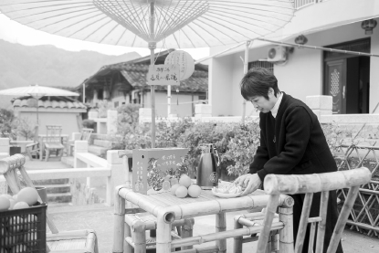 和“卓爷爷庭院小茶馆”一样,周边居民有15户加入“普惠性宜居化改造”。台湾团队配备竹桌椅、遮阳伞和广告牌,村民依托庭院、江景及人流,提供茶饮、销售特产,形成良性发展的“庭院经济”。
