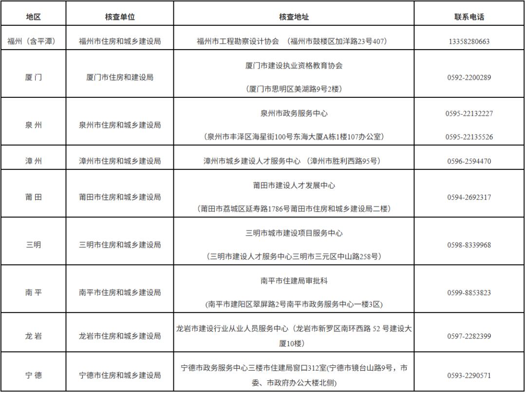 (八)考后资格核查时间、证书发放时间及方式以“福建省住房和城乡建设厅http://zjt.fujian.gov.cn/—行业管理—执业注册—资格考试”栏目通知为准。