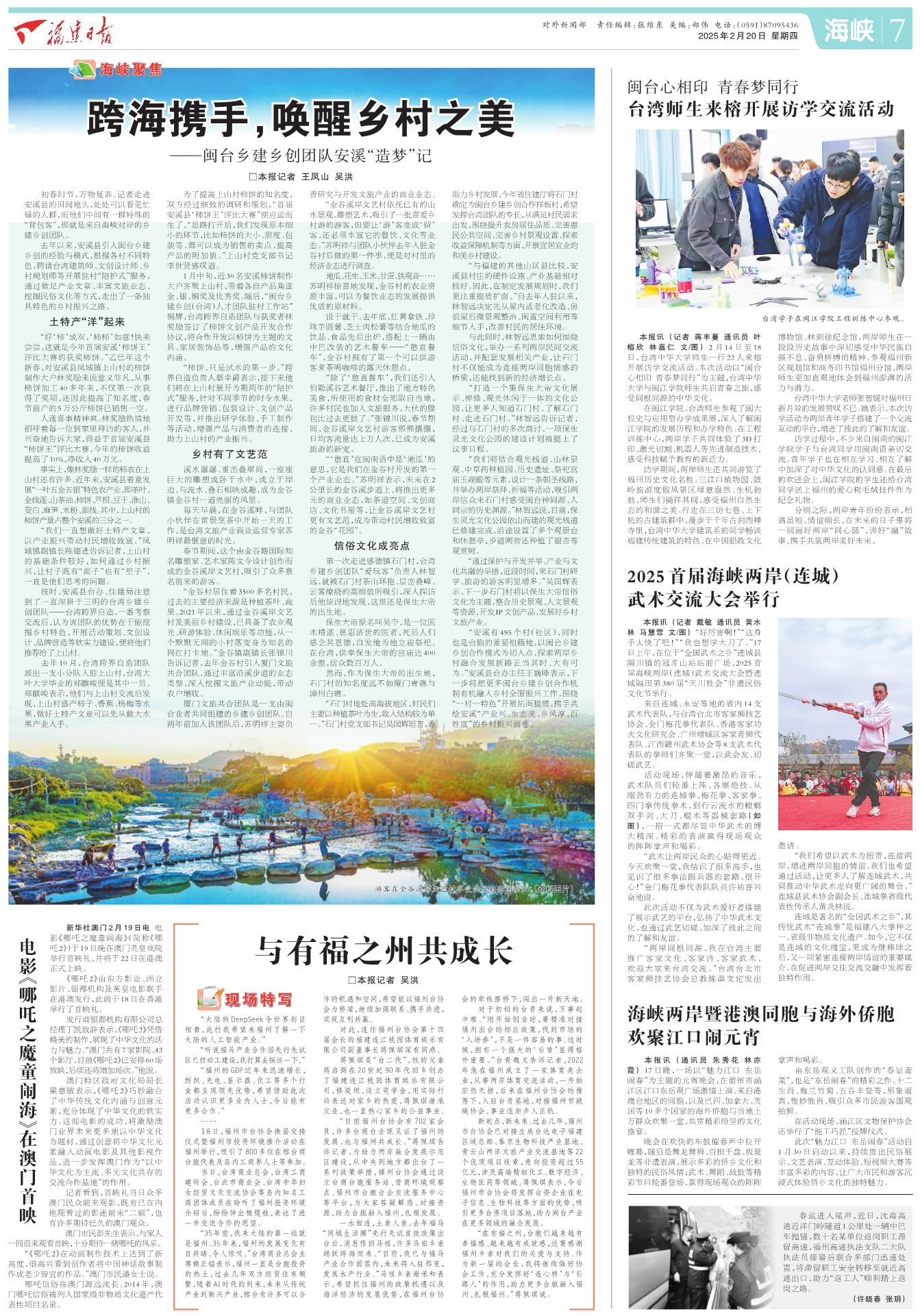 “安溪有495个村(社区),同时也是台胞的重要祖籍地,以闽台乡建乡创合作模式为切入点,探索两岸乡村融合发展新路正当其时、大有可为。”安溪县台办主任王巍峰表示,下一步将把更多闽台乡建乡创合作机制有机融入乡村全面振兴工作,围绕“一村一特色”开展拓面提质,携手共绘安溪“产业兴、生态美、乡风淳、百姓富”的乡村振兴画卷。