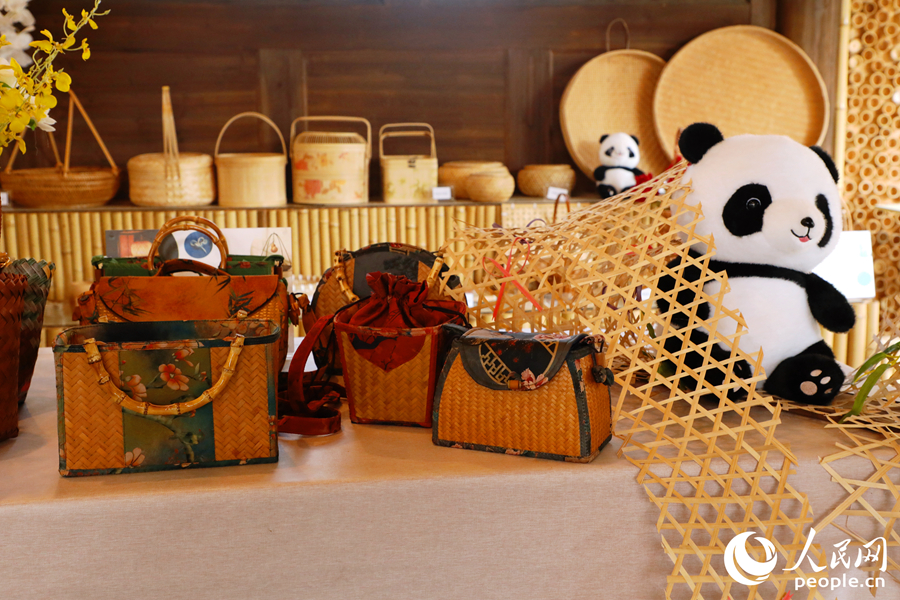 竹编文化体验馆内的竹编作品。人民网 李唯一摄