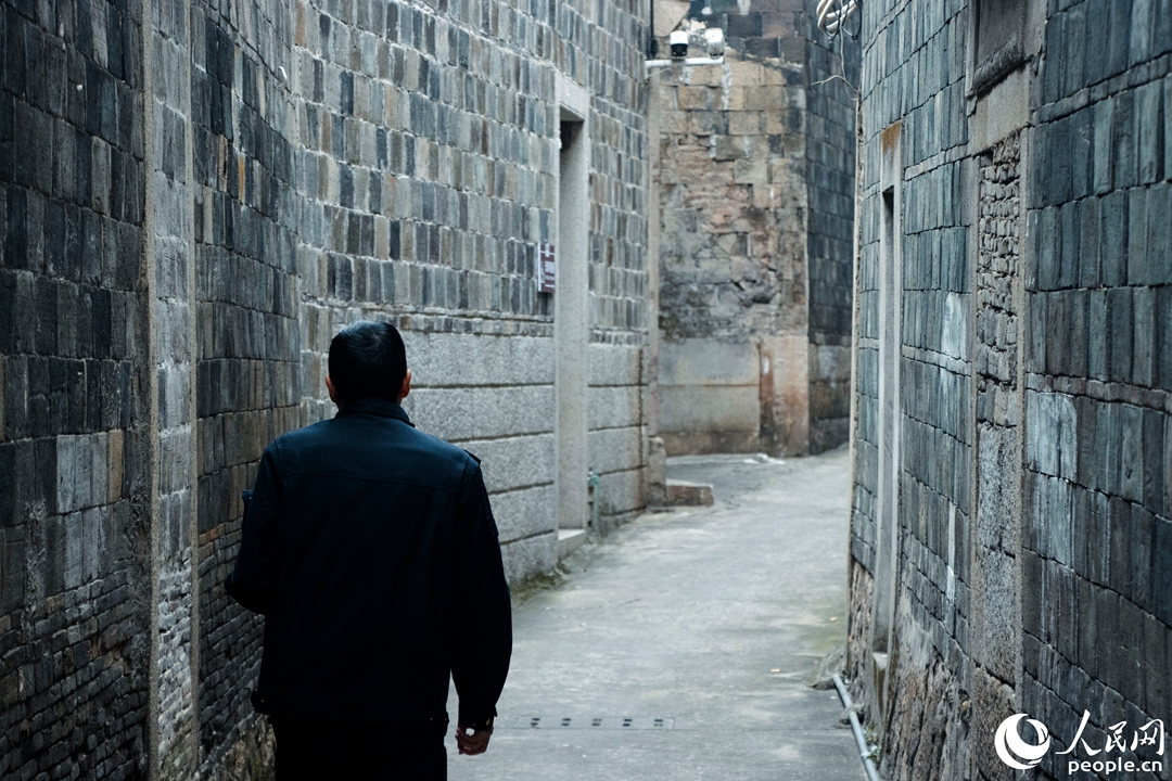 标志性的青灰石砌墙体巷道。人民网 林铭贤摄
