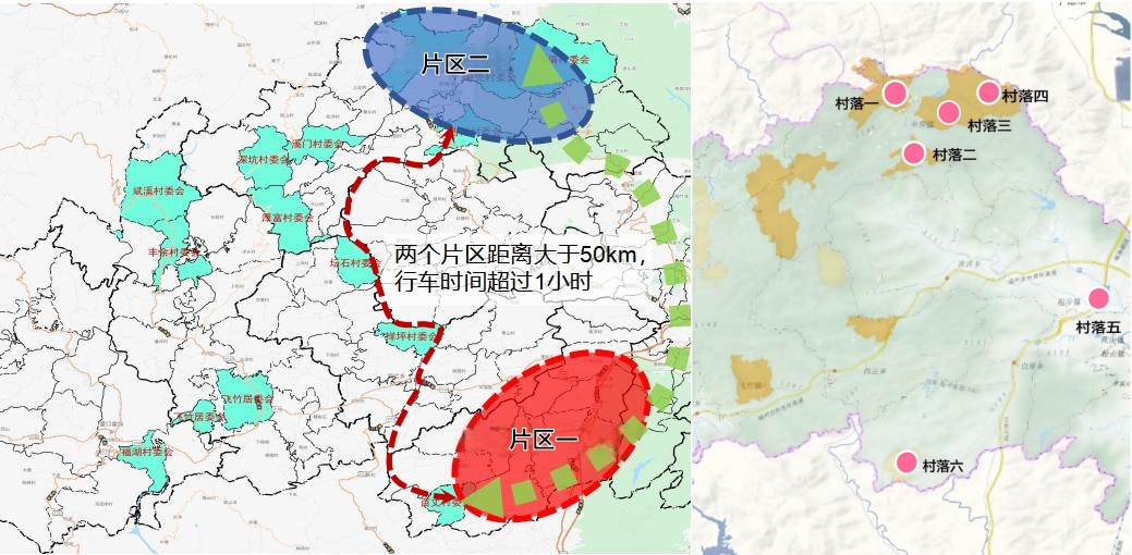 该县编制了集中连片保护规划,规划分为两个片区,两个片区的车行距离约50公里,其中片区以内的两个村相距就达到20公里以上,难以形成“连片”的概念。全县组织修缮完成的20栋历史建筑和传统风貌建筑,分散在上述两个片区的6个村内。此外,片区外还单独安排了相关项目。